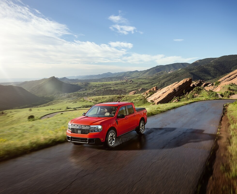 The Ford Maverick is a small truck with spunky performance around Westminster, CO. It has a 2.0-liter four-cylinder engine and an automatic eight-speed transmission. You can also choose a hybrid powertrain with a 2.5-liter four-cylinder engine and an electric motor. The 2.0-liter engine reaches an impressive 238 horsepower, while the 2.5-liter can achieve 191 horsepower.