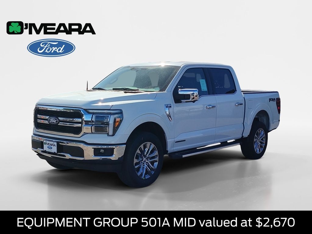 Star White Metallic Tri-Coat 2025 Ford F-150 Lariat 4WD 10-Speed Automatic 3.5L PowerBoost Full-Hybrid V6 3.5L PowerBoost Full-Hybrid V6, 4WD.