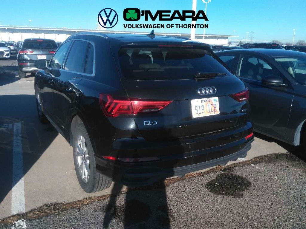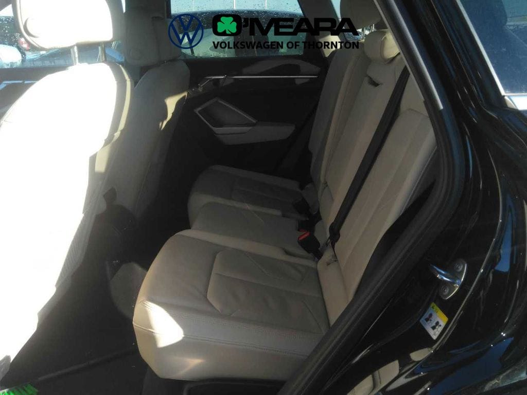 Q3 Premium S Line quattro, 4D Sport Utility, 2.0L 4-Cylinder TFSI, 8-Speed Automatic with Tiptronic, quattro, Mythos Black Metallic, Pearl Beige w/Leather Seating Surfaces, 10 Speakers, 3.53 Axle Ratio, 4-Wheel Disc Brakes, ABS brakes, Air Conditioning, Alloy wheels, AM/FM radio, Audi smartphone interface (Apple CarPlay/Android Auto), Auto High-beam Headlights, Automatic temperature control, Brake assist, Bumpers: body-color, Delay-off headlights, Driver door bin, Driver vanity mirror, Dual front impact airbags, Dual front side impact airbags, Electronic Stability Control, Emergency communication system: Audi connect CARE, Exterior Parking Camera Rear, Four wheel independent suspension, Front anti-roll bar, Front Bucket Seats, Front Center Armrest, Front dual zone A/C, Front fog lights, Front reading lights, Fully automatic headlights, Heated door mirrors, Heated Front Bucket Seats, Heated front seats, Illuminated entry, Knee airbag, Leather Seating Surfaces, Leather steering wheel, Low tire pressure warning, Occupant sensing airbag, Outside temperature display, Overhead airbag, Overhead console, Panic alarm, Passenger door bin, Passenger vanity mirror, Power door mirrors, Power driver seat, Power Liftgate, Power moonroof: Panoramic, Power passenger seat, Power steering, Power windows, Radio data system, Radio: Audi Sound System, Rain sensing wipers, Rear air conditioning, Rear anti-roll bar, Rear fog lights, Rear reading lights, Rear seat center armrest, Rear window defroster, Rear window wiper, Remote keyless entry, Speed control, Speed-sensing steering, Split folding rear seat, Spoiler, Steering wheel mounted audio controls, Tachometer, Telescoping steering wheel, Tilt steering wheel, Traction control, Trip computer, Turn signal indicator mirrors, Variably intermittent wipers, Wheels: 18" 5-V-Spoke-S Design.