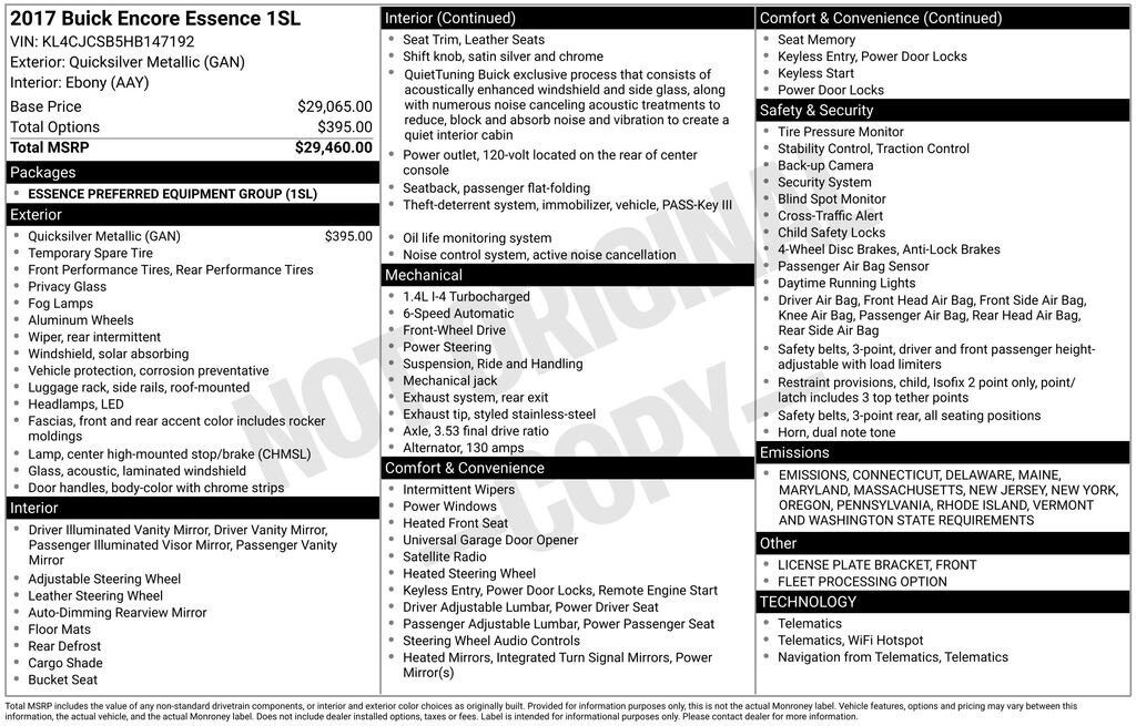 Used 2017 BuickEncore Essence SUV ECOTEC Turbo VVT DOHC 4 Cyl. Engine
