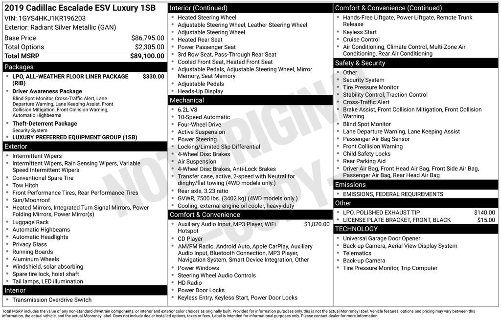 Used 2019 CADILLACEscalade ESV Luxury SUV Engine: , V-8, SIDI, Active Fuel Mgt