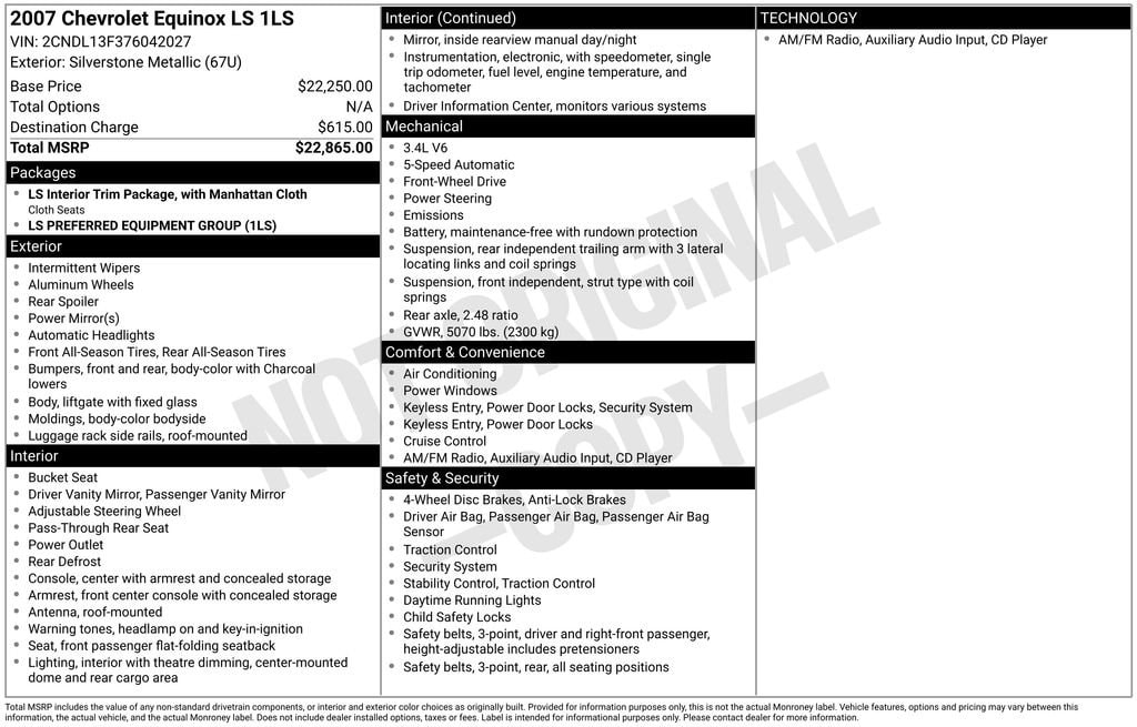 2007 Chevrolet Equinox LS SUV GAS, 6 CYL, , SFI, V6, SGM