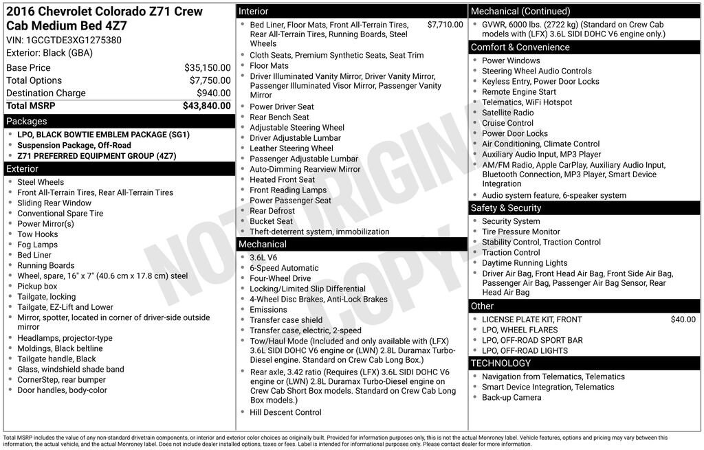 2016 Chevrolet Colorado 4WD Z71 Truck Engine: Gas, 6 Cylinder, SIDI, DOHC, VVT
