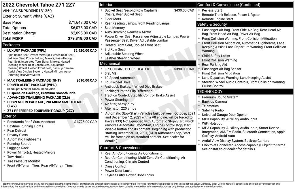 2022 Chevrolet Tahoe Z71 SUV V8 engine