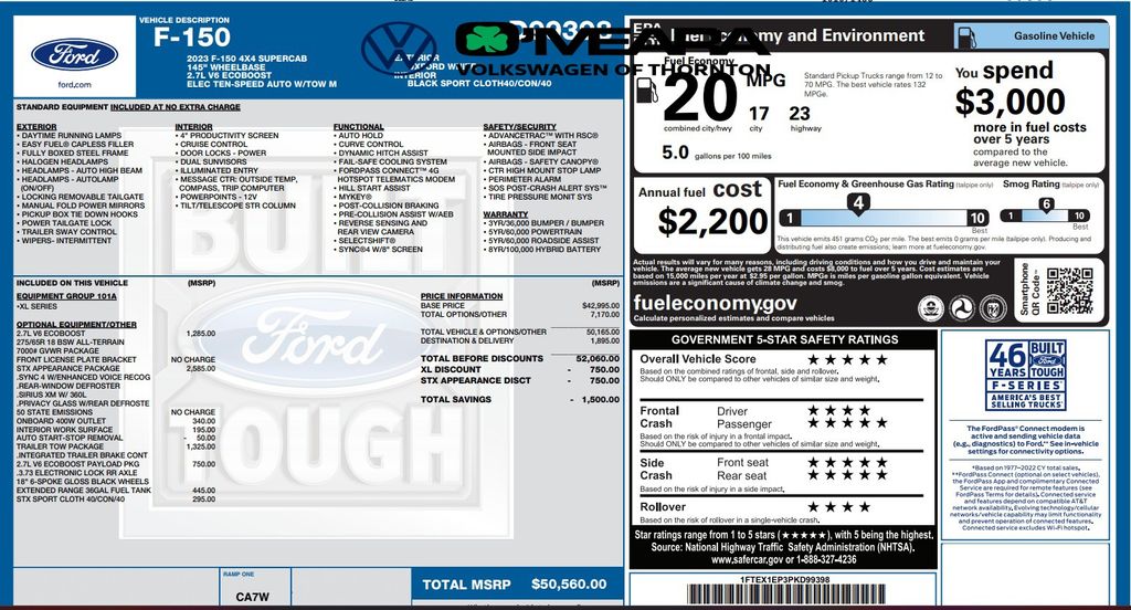 Low Low Miles, 4x4, One Owner & Local Trade In, F-150 XL, Super Cab, 2.7L V6 EcoBoost, 10-Speed Automatic, 4WD, Oxford White, Black Cloth, 2.7L V6 EcoBoost Payload Package, 4-Wheel Disc Brakes, 6 Speakers, ABS brakes, Air Conditioning, AM/FM radio, Auto High Beam, Auto High-beam Headlights, Body-Color Front & Rear Bumpers, Box Side Decals, Brake assist, Class IV Trailer Hitch Receiver, Cloth 40/20/40 Front Seat, Compass, Delay-off headlights, Driver door bin, Dual front impact airbags, Dual front side impact airbags, Electronic Locking w/3.73 Axle Ratio, Electronic Stability Control, Emergency communication system: SYNC 4 911 Assist, Equipment Group 101A Standard, Extended Range 36 Gallon Fuel Tank, Exterior Parking Camera Rear, Front anti-roll bar, Front Center Armrest, Front reading lights, Front wheel independent suspension, Fully automatic headlights, GVWR: 6,480 lbs Payload Package, GVWR: 7,000 lbs Payload Package, Heated door mirrors, Illuminated entry, Integrated Trailer Brake Controller, Interior Work Surface, Lane-Keeping System, Low tire pressure warning, Molded-In Color Black Honeycomb Style Grille, Occupant sensing airbag, Onboard 400W Outlet, Outside temperature display, Overhead airbag, Overhead console, Panic alarm, Passenger door bin, Passenger vanity mirror, Post-Collision Braking, Power door mirrors, Power steering, Power windows, Pre-Collision Assist w/Automatic Emergency Braking, Radio data system, Radio: AM/FM SiriusXM w/360L, Radio: AM/FM Stereo w/6 Speakers, Rear step bumper, Rear Window Fixed Privacy Glass w/Defroster, Rear-View Camera, Remote keyless entry, Reverse Sensing System, Security system, Speed control, Speed-sensing steering, Split folding rear seat, Steering wheel mounted audio controls, STX Appearance Package, SYNC 4, SYNC 4 w/Enhanced Voice Recognition, Tachometer, Telescoping steering wheel, Tilt steering wheel, Traction control, Trailer Tow Package, Trip computer, Unique Sport Cloth 40/20/40 Front-Seats, Variably intermittent wipers, Voltmeter, Wheels: 18" 6-Spoke Machined Aluminum.