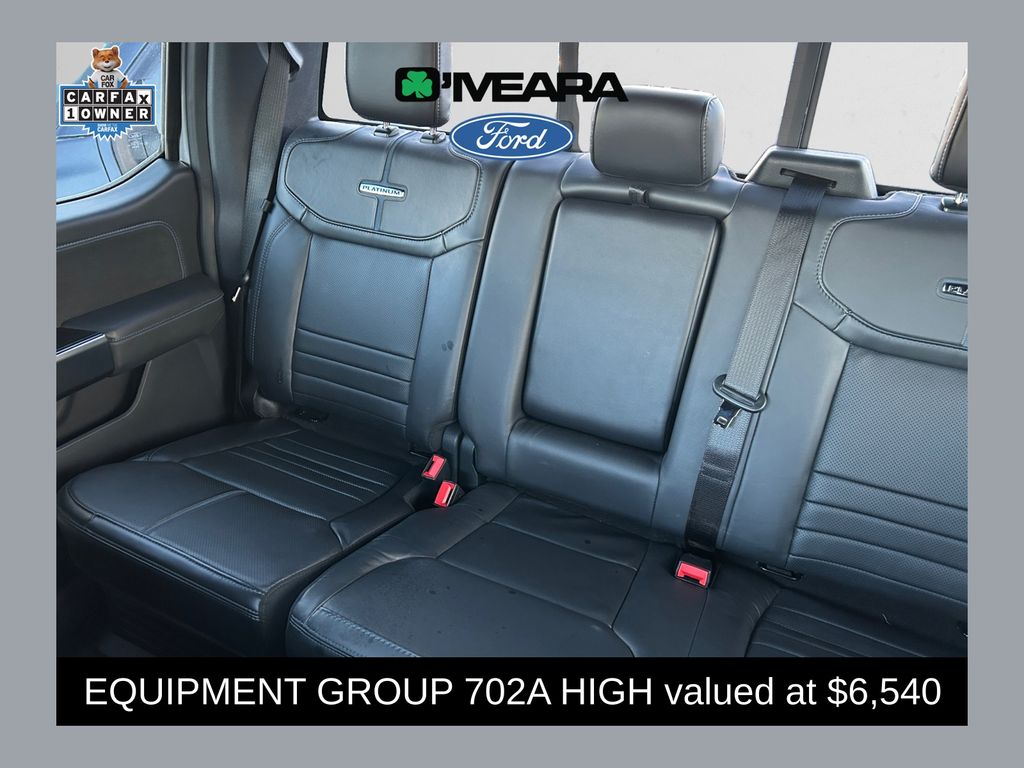 The F-150 Platinum's impressive capabilities are further enhanced by the FX4 Off-Road Package, which includes features like Continuously Controlled Damping, Monotube Rear Shocks, Off-Road Tuned Front Shock Absorbers, Rock Crawl Mode, and a 4x4 FX4 Off-Road Bodyside Decal. Whether you're tackling the daily commute or venturing off the beaten path, this truck is ready to handle it all with confidence.