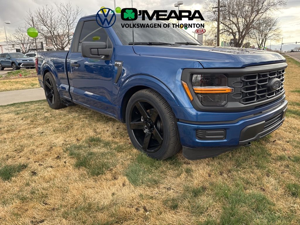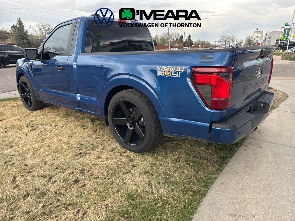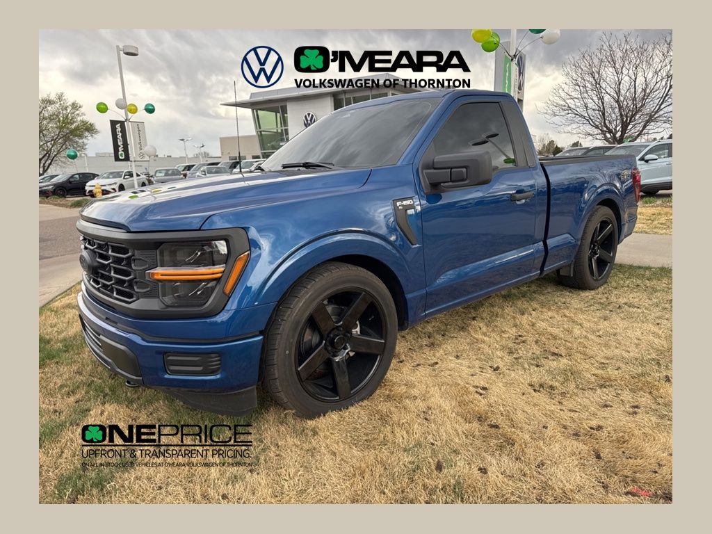 Roush Lighting Packagess, 2 Ford Keys, 3 Inch Lowering Kit, SuperCharged, This Truck is Bad, F-150 XL ROUSH, 2D Standard Cab, 5.0L V8, 10-Speed Automatic, 4WD, Blue Metallic, Black W/Medium Dark Slate Cloth, 4 Speakers, 4-Wheel Disc Brakes, ABS brakes, Air Conditioning, AM/FM radio: SiriusXM with 360L, Auto High-beam Headlights, Brake assist, Cloth 40/20/40 Front Seat, Compass, Delay-off headlights, Driver door bin, Dual front impact airbags, Dual front side impact airbags, Electronic Locking w/3.73 Axle Ratio, Electronic Stability Control, Emergency communication system: SYNC 4 911 Assist, Equipment Group 101A Standard, Front anti-roll bar, Front Center Armrest, Front reading lights, Front wheel independent suspension, Fully automatic headlights, GVWR: 6,450 lbs Payload Package, Heated door mirrors, Illuminated entry, Internet access capable: FordPass Connect 5G, Low tire pressure warning, Occupant sensing airbag, Outside temperature display, Overhead airbag, Overhead console, Panic alarm, Passenger door bin, Passenger vanity mirror, Power door mirrors, Power steering, Power windows, Radio data system, Radio: AM/FM Stereo w/SiriusXM 360L, Rear Parking Sensors, Rear step bumper, Remote keyless entry, Security system, Speed control, Steering wheel mounted audio controls, SYNC 4 w/Enhanced Voice Recognition, Tachometer, Telescoping steering wheel, Tilt steering wheel, Traction control, Trip computer, Variably intermittent wipers, Voltmeter, Wheels: 17" Silver Steel.