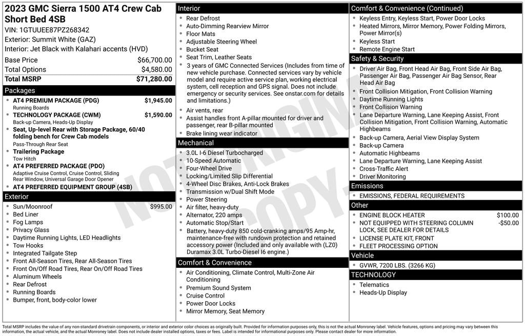 Used 2023 GMCSierra 1500 AT4 Truck Duramax® Turbo Diesel engine