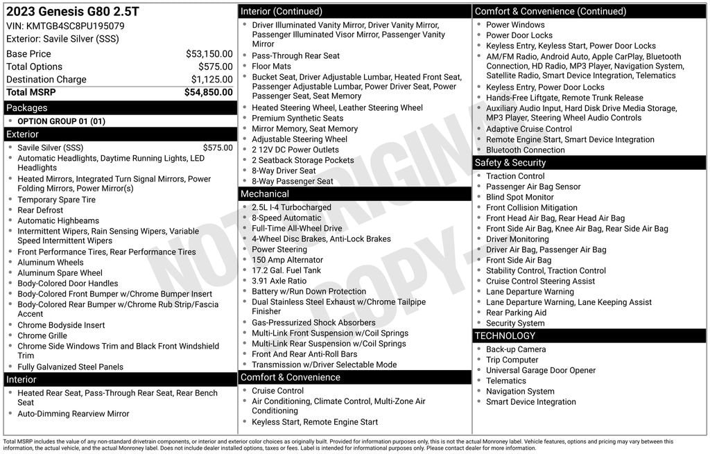 CLEAN CARFAX, NON SMOKER, APPLE CARPLAY, ANDROID AUTO, 1 OWNER, G80 2.5T, 4D Sedan, I4, 8-Speed Automatic, AWD, Savile Silver, Obsidian Black w/Leatherette Seating Surfaces, 12 Speakers, AM/FM radio: SiriusXM, Android Auto & Apple CarPlay, Option Group 01, Radio data system, Radio: AM/FM/HD/SiriusXM Audio System.