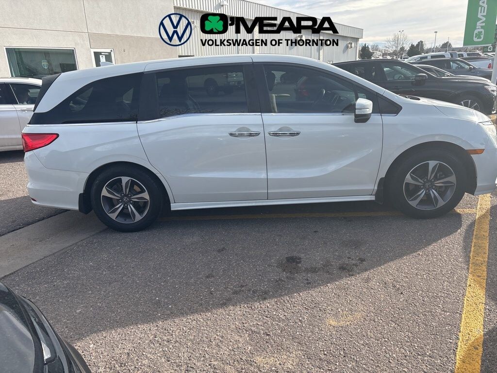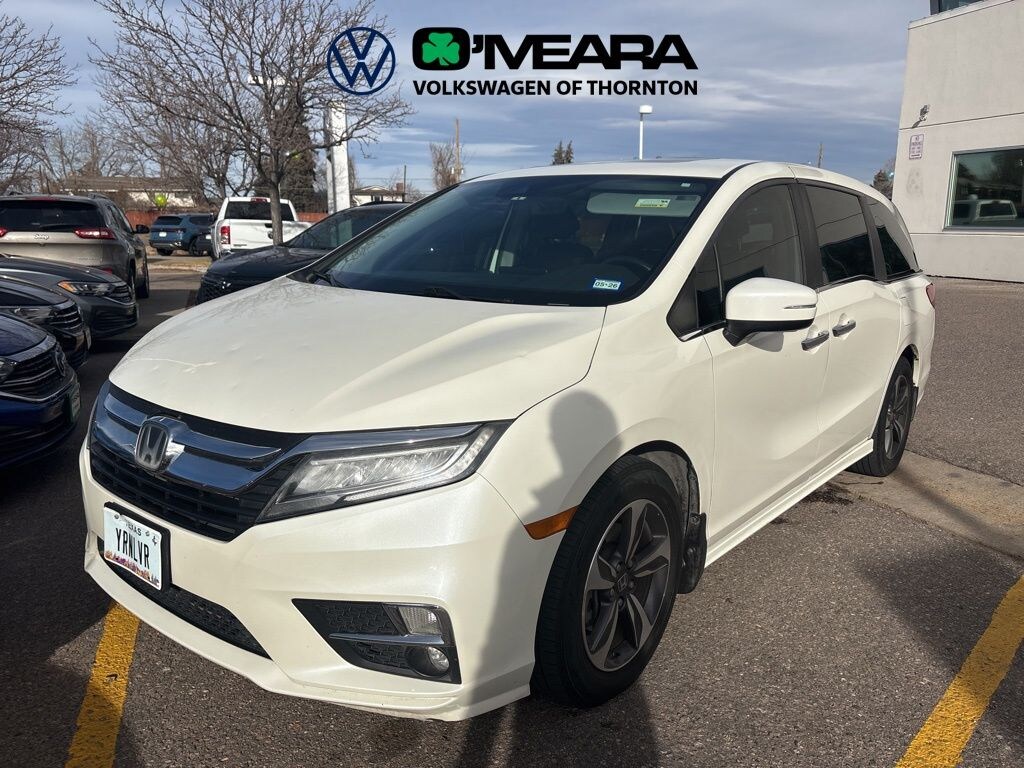 Super Clean Trade In, Some Hail Damage, Odyssey Touring, 4D Passenger Van, 3.5L V6 SOHC i-VTEC 24V, 10-Speed Automatic, FWD, Diamond White Pearl, Gray w/Leather Seat Trim, 18" Machine-Finished Alloy Wheels, 3.61 Axle Ratio, 3rd row seats: split-bench, 4-Wheel Disc Brakes, 7 Speakers, A/V remote, ABS brakes, Air Conditioning, Alloy wheels, AM/FM radio: SiriusXM, Anti-whiplash front head restraints, Apple CarPlay/Android Auto, Auto High-beam Headlights, Auto-dimming Rear-View mirror, Automatic temperature control, Blind Spot Information (BSI) System warning, Brake assist, Bumpers: body-color, CD player, Compass, Delay-off headlights, Driver door bin, Driver vanity mirror, Driver's Seat Mounted Armrest, Dual front impact airbags, Dual front side impact airbags, DVD-Audio, Electronic Stability Control, Emergency communication system: HondaLink, Exterior Parking Camera Rear, Four wheel independent suspension, Front anti-roll bar, Front Bucket Seats, Front dual zone A/C, Front fog lights, Front reading lights, Fully automatic headlights, Garage door transmitter: HomeLink, Headphones, Heated door mirrors, Heated Front Bucket Seats, Heated front seats, Illuminated entry, Knee airbag, Leather Seat Trim, Leather steering wheel, Low tire pressure warning, Memory seat, Navigation system: Honda Satellite-Linked Navigation System, Occupant sensing airbag, Outside temperature display, Overhead airbag, Overhead console, Panic alarm, Passenger door bin, Passenger seat mounted armrest, Passenger vanity mirror, Power door mirrors, Power driver seat, Power Liftgate, Power moonroof, Power passenger seat, Power steering, Power windows, Radio data system, Radio: 160-Watt AM/FM/HD/SiriusXM Audio System, Rear air conditioning, Rear anti-roll bar, Rear audio controls, Rear reading lights, Rear seat center armrest, Rear window defroster, Rear window wiper, Reclining 3rd row seat, Remote keyless entry, Security system, Speed control, Speed-sensing steering, Speed-Sensitive Wipers, Split folding rear seat, Spoiler, Steering wheel mounted audio controls, Tachometer, Telescoping steering wheel, Tilt steering wheel, Traction control, Trip computer, Turn signal indicator mirrors, Variably intermittent wipers.