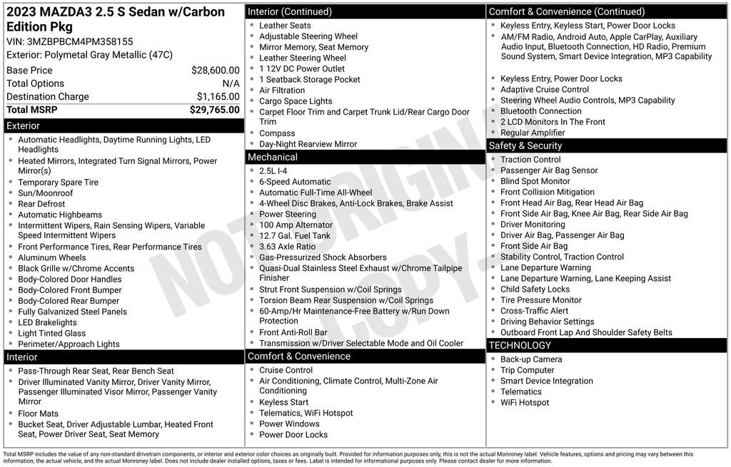 Used 2023 MazdaMazda3 Sedan 2.5 S Carbon Edition