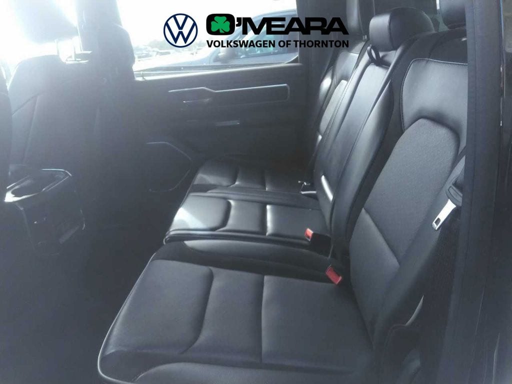 Great Color Combo, HEMI V8 Power, Fully Serviced, 1500 Laramie, 4D Crew Cab, HEMI 5.7L V8 Multi Displacement VVT eTorque, 8-Speed Automatic, 4WD, Diamond Black Crystal Pearlcoat, Black w/Leather Trimmed Bucket Seats, 10 Speakers, 3 Rear Seat Head Restraints, 3.21 Rear Axle Ratio, 4 Way Front Headrests, 4-Wheel Disc Brakes, 48V Belt Starter Generator, 4G LTE Wi-Fi Hot Spot, ABS brakes, Air Conditioning, Alloy wheels, AM/FM radio: SiriusXM with 360L, Apple CarPlay, Apple CarPlay/Android Auto, Audio memory, Auto-dimming door mirrors, Auto-Dimming Exterior Driver Mirror, Auto-dimming Rear-View mirror, Automatic temperature control, Brake assist, Bumpers: chrome, Chrome Exterior Mirrors, Compass, Connected Travel & Traffic Services, Connectivity - US/Canada, Convex Wide-Angle Exterior Mirror Insert, Delay-off headlights, Driver door bin, Driver Seat Memory, Driver vanity mirror, Dual front impact airbags, Dual front side impact airbags, Electronic Stability Control, Exterior Mirrors Courtesy Lamps, Exterior Mirrors w/Heating Element, Exterior Mirrors w/Memory, Exterior Mirrors w/Supplemental Signals, For Details, Visit DriveUconnect.com, For More Info, Call 800-643-2112, Front anti-roll bar, Front Center Armrest w/Storage, Front dual zone A/C, Front fog lights, Front reading lights, Front Seat Back Map Pockets, Front wheel independent suspension, Fully automatic headlights, Garage door transmitter, Global Telematics Box Module (TBM), Google Android Auto, GPS Navigation, HD Radio, Heated door mirrors, Heated Front Seats, Heated front seats, Heated Steering Wheel, Heated steering wheel, Illuminated entry, Integrated Voice Command w/Bluetooth, Leather steering wheel, Leather Trim 40/20/40 Bench Seat, Low tire pressure warning, Memory seat, Navigation System, Occupant sensing airbag, Outside temperature display, Overhead airbag, Overhead console, Panic alarm, ParkView Rear Back-Up Camera, Passenger door bin, Passenger vanity mirror, Power 2-Way Driver Lumbar Adjust, Power 2-Way Passenger Lumbar Adjust, Power 8-Way Driver & Passenger Seats, Power door mirrors, Power driver seat, Power passenger seat, Power steering, Power windows, Power-Folding Mirrors, Radio data system, Radio: Uconnect 5 Nav w/8.4" Display, RAM Grille Badge - Chrome, Rear 60/40 Folding Seat, Rear anti-roll bar, Rear seat center armrest, Rear step bumper, Remote keyless entry, SiriusXM Radio Service, SiriusXM w/360L, Speed control, Split folding rear seat, Steering wheel mounted audio controls, Tachometer, Telescoping steering wheel, Tilt steering wheel, Traction control, Trip computer, Turn signal indicator mirrors, USB Host Flip, Variably intermittent wipers, Ventilated Front Seats, Ventilated front seats, Voltmeter, Wheels: 18" x 8" Aluminum Base Painted.