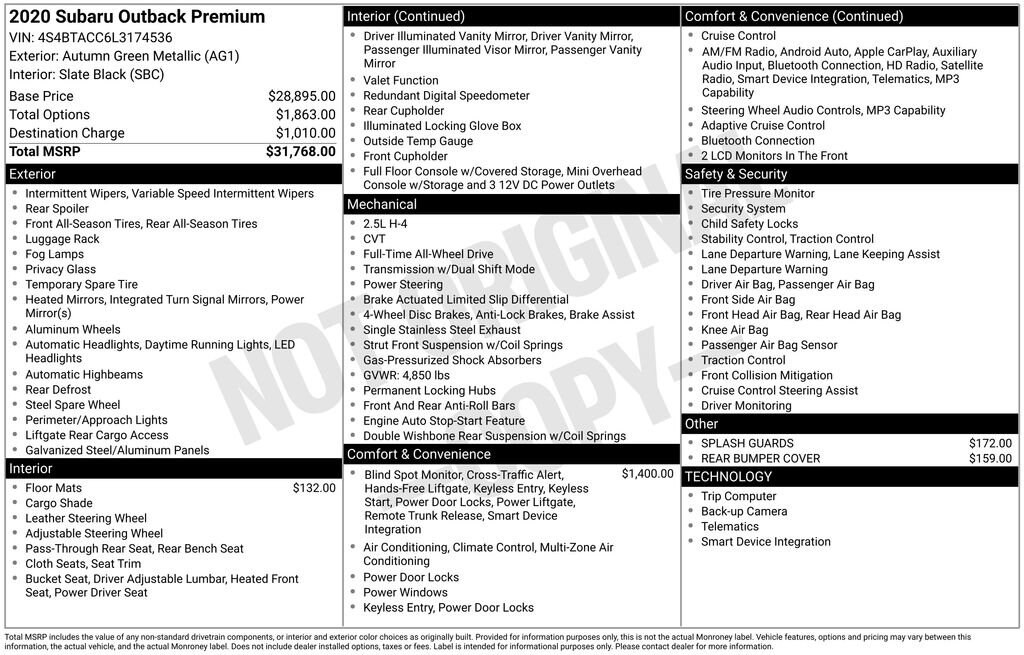 Used 2020 SubaruOutback Premium
