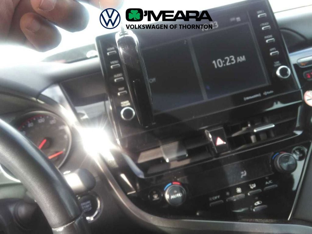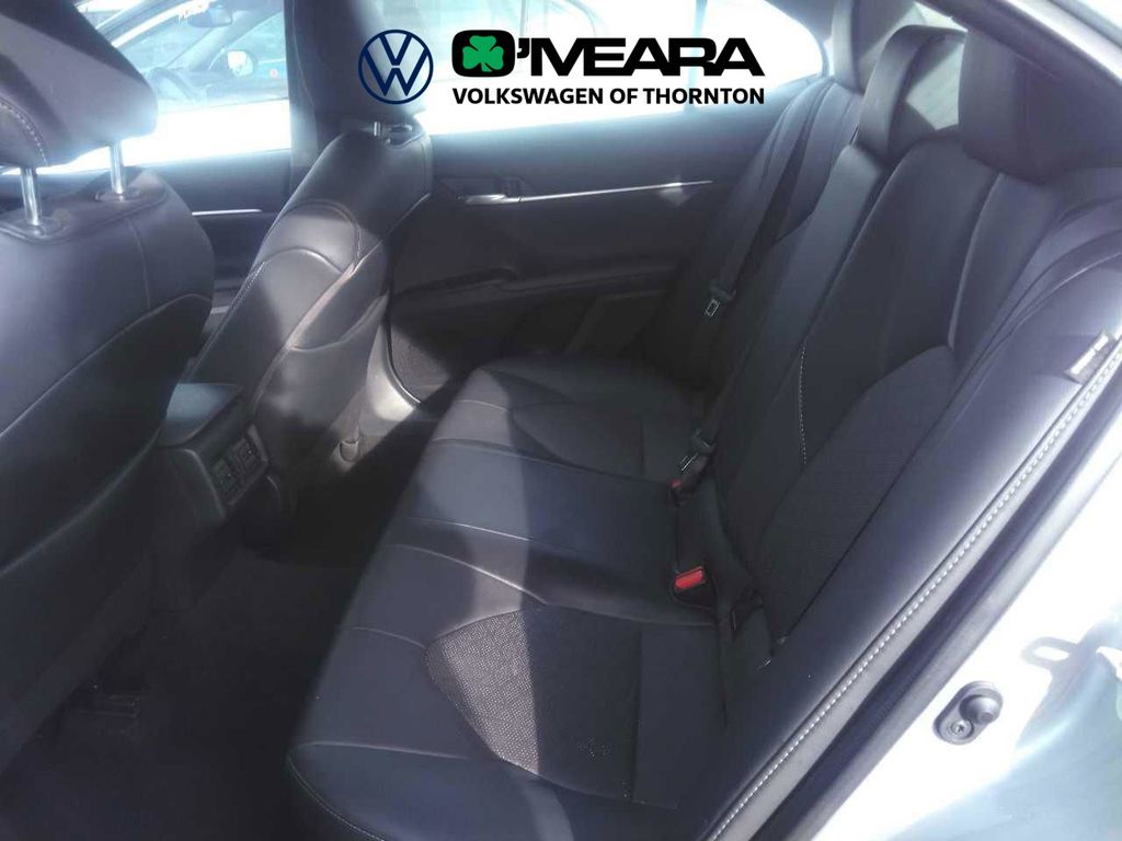 Camry XSE, 4D Sedan, 2.5L I4 DOHC 16V, 8-Speed Automatic, FWD, Celestial Silver Metallic, Black w/Perforated Leather Seat Trim, 4-Wheel Disc Brakes, 6 Speakers, ABS brakes, Air Conditioning, Alloy wheels, AM/FM radio: SiriusXM, Apple CarPlay/Android Auto, Auto High-beam Headlights, Auto-dimming Rear-View mirror, Automatic temperature control, Brake assist, Bumpers: body-color, Delay-off headlights, Driver door bin, Driver vanity mirror, Dual front impact airbags, Dual front side impact airbags, Electronic Stability Control, Emergency communication system: Safety Connect (1-year trial), Exterior Parking Camera Rear, Four wheel independent suspension, Front anti-roll bar, Front Bucket Seats, Front Center Armrest, Front dual zone A/C, Front reading lights, Fully automatic headlights, Garage door transmitter: HomeLink, Heated door mirrors, Heated front seats, Knee airbag, Leather steering wheel, Low tire pressure warning, Multi-Stage Heated Front Bucket Seats, Occupant sensing airbag, Outside temperature display, Overhead airbag, Overhead console, Panic alarm, Passenger door bin, Passenger vanity mirror, Perforated Leather Seat Trim, Power door mirrors, Power driver seat, Power passenger seat, Power steering, Power windows, Radio data system, Radio: Audio Plus, Rear anti-roll bar, Rear reading lights, Rear seat center armrest, Rear side impact airbag, Rear window defroster, Remote keyless entry, Security system, Speed control, Speed-sensing steering, Split folding rear seat, Spoiler, Steering wheel mounted audio controls, Tachometer, Telescoping steering wheel, Tilt steering wheel, Traction control, Trip computer, Turn signal indicator mirrors, Variably intermittent wipers, Wheels: 8.0J x 19" Alloy.