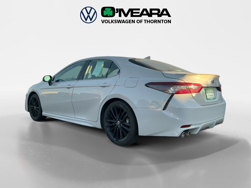 Camry XSE, 4D Sedan, 2.5L I4 DOHC 16V, 8-Speed Automatic, FWD, Ice Edge, Black w/Silver Performance w/Sport SofTex Seat Trim w/Fabric Inserts, 4-Wheel Disc Brakes, 6 Speakers, ABS brakes, Air Conditioning, Alloy wheels, AM/FM radio: SiriusXM, Apple CarPlay/Android Auto, Auto High-beam Headlights, Auto-dimming Rear-View mirror, Automatic temperature control, Brake assist, Bumpers: body-color, Delay-off headlights, Driver door bin, Driver vanity mirror, Dual front impact airbags, Dual front side impact airbags, Electronic Stability Control, Emergency communication system: Safety Connect (1-year trial), Exterior Parking Camera Rear, Four wheel independent suspension, Front anti-roll bar, Front Bucket Seats, Front Center Armrest, Front dual zone A/C, Front reading lights, Fully automatic headlights, Garage door transmitter: HomeLink, Heated door mirrors, Heated front seats, Illuminated entry, Knee airbag, Leather steering wheel, Low tire pressure warning, Multi-Stage Heated Front Bucket Seats, Occupant sensing airbag, Outside temperature display, Overhead airbag, Overhead console, Panic alarm, Passenger door bin, Passenger vanity mirror, Perforated Leather Seat Trim, Power door mirrors, Power driver seat, Power passenger seat, Power steering, Power windows, Radio data system, Radio: Audio Plus, Rear anti-roll bar, Rear reading lights, Rear seat center armrest, Rear side impact airbag, Rear window defroster, Remote keyless entry, Security system, Speed control, Speed-sensing steering, Split folding rear seat, Spoiler, Steering wheel mounted audio controls, Tachometer, Telescoping steering wheel, Tilt steering wheel, Traction control, Trip computer, Turn signal indicator mirrors, Variably intermittent wipers, Wheels: 19" x 8J Alloy.