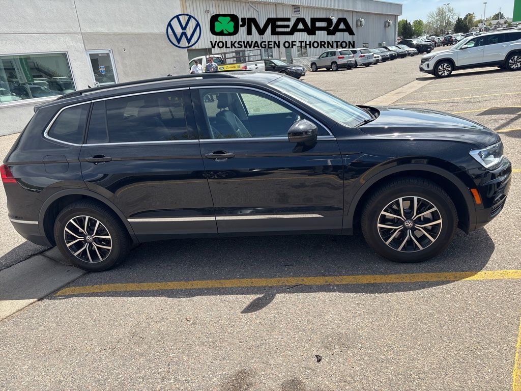 2 VW Keys, Low Low Miles, Great Color Combo, One Owner Local Trade In, Clean Car Fax History, Tiguan 2.0T SE, 4D Sport Utility, 2.0L TSI DOHC, 8-Speed Automatic with Tiptronic, AWD, Deep Black, Titan Black Premium Synthetic, 2-Row Rubber Monster Mats w/Logo Kit (Set of 4), 3.33 Axle Ratio, 4-Wheel Disc Brakes, 4-Wheel Independent Suspension, 6 Speakers, ABS brakes, Air Conditioning, Alloy wheels, AM/FM radio: SiriusXM with 360L, Automatic temperature control, Brake assist, Bumpers: body-color, Compass, Delay-off headlights, Driver door bin, Driver vanity mirror, Dual front impact airbags, Dual front side impact airbags, Electronic Stability Control, Emergency communication system: VW Car-Net services (capabilities require enrollment or subscription), Exterior Parking Camera Rear, Forward collision: FCW w/Autonomous Emergency Braking mitigation, Four wheel independent suspension, Frameless Auto-Dimming Rearview Mirror, Front anti-roll bar, Front Bucket Seats, Front Center Armrest, Front dual zone A/C, Front reading lights, Fully automatic headlights, Heated door mirrors, Heated Front Comfort Seats, Heated front seats, Heavy Duty Trunk Liner w/VW CarGo Blocks, Illuminated entry, Leather Shift Knob, Low tire pressure warning, Occupant sensing airbag, Outside temperature display, Overhead airbag, Overhead console, Panic alarm, Panoramic Sunroof Package, Passenger door bin, Passenger vanity mirror, Perforated V-Tex Leatherette Seating Surfaces, Power door mirrors, Power driver seat, Power steering, Power windows, Radio data system, Radio: MIB3 Composition Media AM/FM/HD, Rear anti-roll bar, Rear reading lights, Rear seat center armrest, Rear window defroster, Rear window wiper, Remote keyless entry, Roof rack: rails only, Security system, Speed control, Speed-sensing steering, Split folding rear seat, Spoiler, Steering wheel mounted audio controls, Tachometer, Telescoping steering wheel, Tilt steering wheel, Traction control, Trip computer, Turn signal indicator mirrors, Variably intermittent wipers, VW Care, Wheels: 17" 2-Tone Machined & Black Alloy.