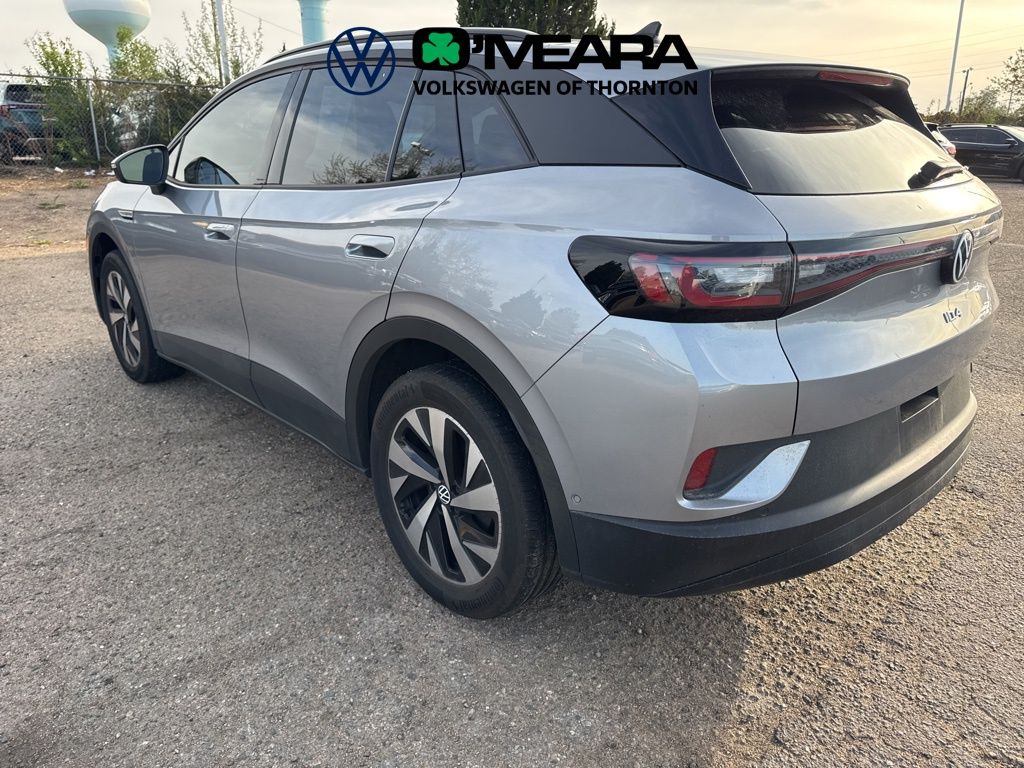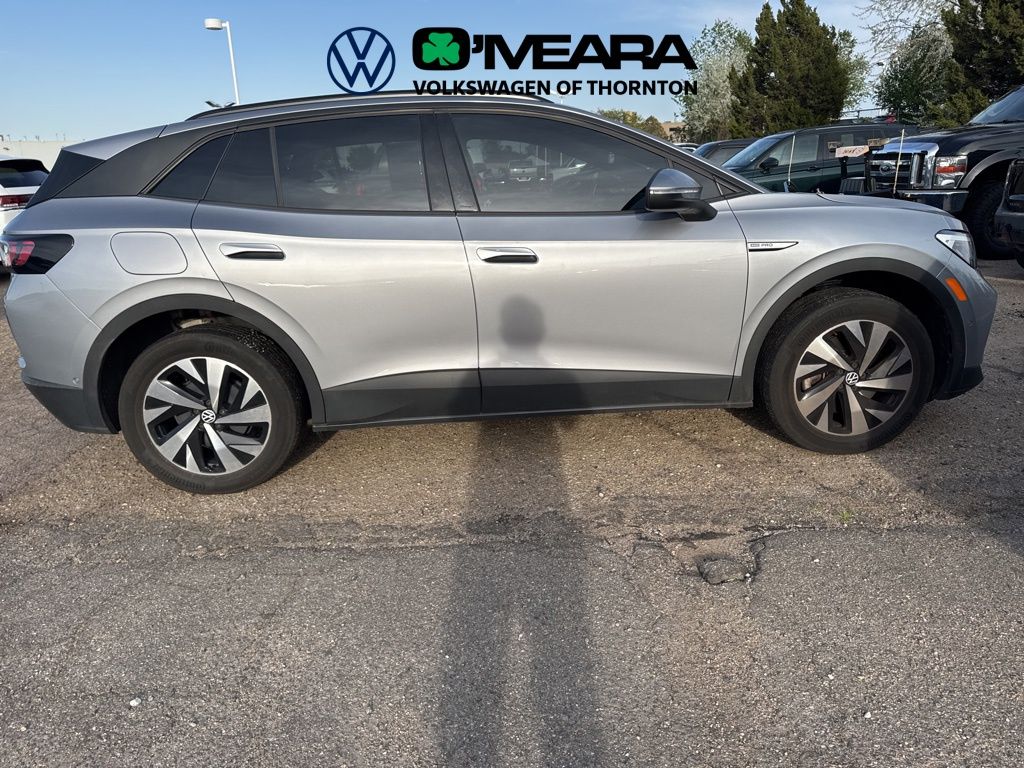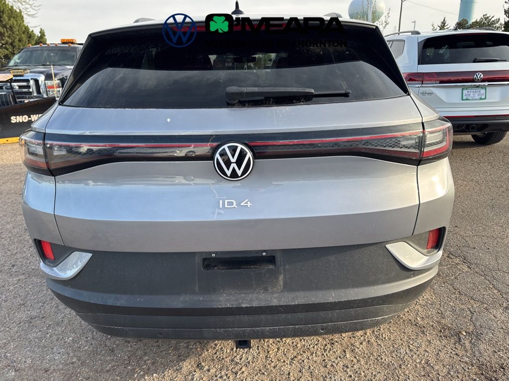 ID.4 Pro, 4D Sport Utility, Electric Motor, Single-Speed Automatic, AWD, Silver Mist Metallic, Gray W/Black Bolsters Cloth, 3.90 Axle Ratio, 4 Wheel Independent Suspension, 7 Speakers, ABS brakes, Air Conditioning, Alloy wheels, Auto High-beam Headlights, Auto-dimming Rear-View mirror, Automatic temperature control, Brake assist, Bumpers: body-color, Cloth Seating Surfaces, Delay-off headlights, Driver door bin, Driver vanity mirror, Driver's Seat Mounted Armrest, Dual front impact airbags, Dual front side impact airbags, Electronic Stability Control, Emergency communication system: VW Car-Net Safe & Secure 5-year, Exterior Parking Camera Rear, Four wheel independent suspension, Front anti-roll bar, Front Bucket Seats, Front dual zone A/C, Front reading lights, Fully automatic headlights, Heated door mirrors, Heated Front Seats, Heated front seats, Illuminated entry, Low tire pressure warning, Navigation System, Occupant sensing airbag, Outside temperature display, Overhead airbag, Overhead console, Panic alarm, Passenger door bin, Passenger seat mounted armrest, Passenger vanity mirror, Power door mirrors, Power steering, Power windows, Radio data system, Radio: Discover Pro Max w/12" Touchscreen Nav, Rain sensing wipers, Rear anti-roll bar, Rear reading lights, Rear window defroster, Rear window wiper, Remote keyless entry, Speed control, Speed-sensing steering, Split folding rear seat, Spoiler, Steering wheel mounted audio controls, Telescoping steering wheel, Tilt steering wheel, Traction control, Trip computer, Turn signal indicator mirrors, Variably intermittent wipers, Wheels: 19" 2-Tone Machined Alloy.