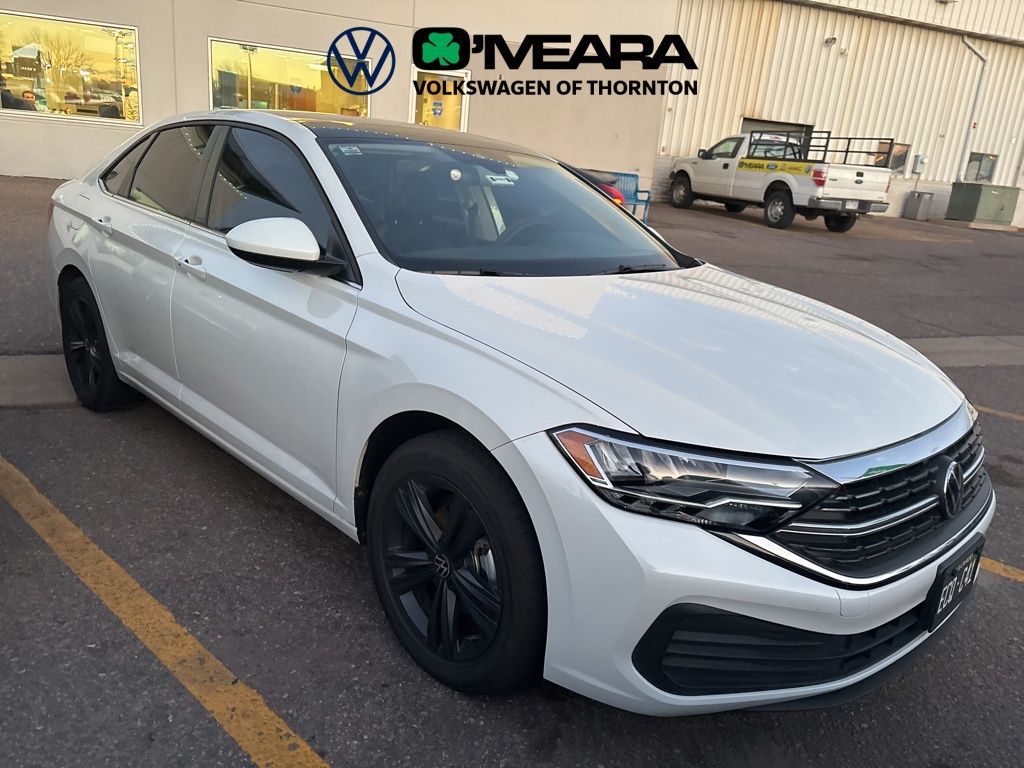 2 VW Keys, Factory Warranty, Low Low Miles, Jetta 1.5T SE, 4D Sedan, 1.5L I-4 DI DOHC Turbocharged, 8-Speed Automatic with Tiptronic, FWD, Opal White Pearl, Black Artificial Leather, 4 Speakers, 4-Wheel Disc Brakes, ABS brakes, Active Blind Spot Monitor, Air Conditioning, Alloy wheels, AM/FM radio, Auto-dimming Rear-View mirror, Automatic temperature control, Black Wheel Package, Brake assist, Bumpers: body-color, Delay-off headlights, Driver door bin, Driver vanity mirror, Dual front impact airbags, Dual Front Reading Lights, Dual front side impact airbags, Electronic Stability Control, Emergency communication system: VW Car-Net Safe & Secure 5-year, Exterior Parking Camera Rear, Front anti-roll bar, Front Bucket Seats, Front Center Armrest, Front dual zone A/C, Front wheel independent suspension, Fully automatic headlights, Heated door mirrors, Heated Front Comfort Sport Seats, Heated front seats, Illuminated entry, Illuminated Vanity Mirrors, Leather Shift Knob, Low tire pressure warning, Occupant sensing airbag, Outside temperature display, Overhead airbag, Overhead console, Overhead Storage Compartment, Panoramic Sunroof Package, Passenger door bin, Passenger vanity mirror, Power door mirrors, Power driver seat, Power steering, Power Tilting & Sliding Panoramic Sunroof, Power windows, Radio data system, Radio: MIB3 Composition Color w/6.5" Touchscreen, Rain sensing wipers, Rear anti-roll bar, Rear reading lights, Rear seat center armrest, Rear window defroster, Remote keyless entry, Speed control, Speed-sensing steering, Split folding rear seat, Steering wheel mounted audio controls, Tachometer, Telescoping steering wheel, Tilt steering wheel, Traction control, Trip computer, V-Tex Leatherette Seat Trim, Variably intermittent wipers, VW Car-Net Safe & Secure 5-Year Package (DISC), Wheels: 17" Twin 5-Spoke Dark Graphite Painted Alloy, Wheels: 17" Twin 5-Spoke Silver Painted Alloy.