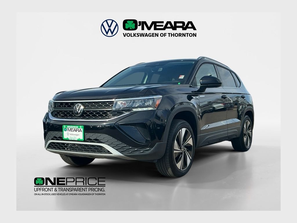 Taos 1.5T SE, 4D Sport Utility, 1.5L I4 Turbocharged DOHC 16V LEV3-SULEV30 158hp, 7-Speed DSG Automatic with Tiptronic, AWD, Deep Black Pearl, Black w/CloudTex & Cloth Seating Surfaces, 4-Wheel Disc Brakes, 5.20 Axle Ratio, 6 Speakers, ABS brakes, Active Blind Spot Monitor, Air Conditioning, Alloy wheels, AM/FM radio: SiriusXM with 360L, Auto High-beam Headlights, Automatic temperature control, Brake assist, Bumpers: body-color, CloudTex & Cloth Seating Surfaces, Compass, Delay-off headlights, Driver door bin, Driver vanity mirror, Dual front impact airbags, Dual front side impact airbags, Electronic Stability Control, Emergency communication system: VW Car-Net Safe & Secure 5-year, Exterior Parking Camera Rear, Four wheel independent suspension, Front anti-roll bar, Front Bucket Seats, Front Center Armrest, Front dual zone A/C, Front reading lights, Front Strut Rear Multi-Link Suspension, Fully automatic headlights, Heated door mirrors, Heated Front Bucket Seats, Heated front seats, Heated steering wheel, Illuminated entry, Leather Shift Knob, Low tire pressure warning, Occupant sensing airbag, Outside temperature display, Overhead airbag, Overhead console, Panic alarm, Passenger door bin, Passenger vanity mirror, Power door mirrors, Power driver seat, Power steering, Power windows, Radio data system, Radio: MIB3 Composition Media AM/FM/HD, Rain sensing wipers, Rear anti-roll bar, Rear seat center armrest, Rear window defroster, Rear window wiper, Remote keyless entry, Security system, Speed control, Speed-sensing steering, Split folding rear seat, Spoiler, Steering wheel mounted audio controls, Tachometer, Telescoping steering wheel, Tilt steering wheel, Traction control, Trip computer, Variably intermittent wipers, Wheels: 18" 2-Tone Machined Alloy.